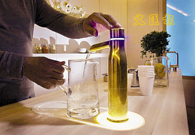 ■「Water Font」多功能水龍頭的功能包括紫外線淨化、碳過濾、礦物質增添等,也可據個人需要,以渦流系統添加成分,調製出特定的健康純淨水。