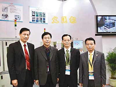 ■科技部高新技術發展及產業化司副司長戴國強( 左二)、SEMI China 總裁丁輝文(左一)參觀格蘭達展位後與董事長林宜龍(右二)、副總經理陳有章合影。
