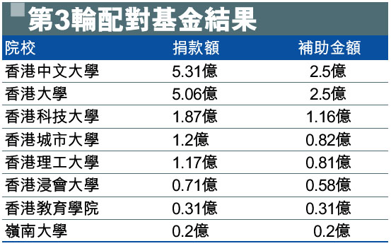第3輪配對基金結果 (圖)