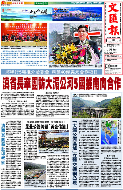 3月26日至4月10日,上任不到兩個月的雲南省省長秦光榮,將率由省政府高層和80多家企業參加的雲南省代表團,先後赴緬甸、泰國、老撾、越南和柬埔寨考察,並將分別在5國各舉行一場推介洽談會,預計將就40個重大項目與大湄公河次區域5國達成合作,合同金額料超過40億美元 。