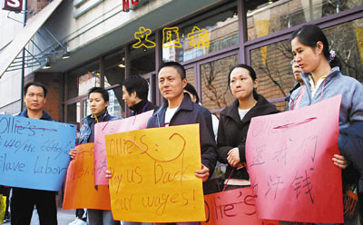 當地時間29日,數10名來自中國福建的餐館工在紐約市移民權益保護組織和律師的協助下,將他們曾工作過或者正在工作的一家曼哈頓亞洲風味餐館連鎖店正式告上法庭,指控該店違反多項勞工法,以超低時薪的方式壓榨勞力。 中新社