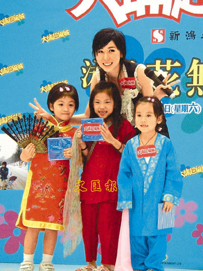 席上泳兒又跟fans玩遊戲,三名年僅四至六歲的小歌迷更打扮成林黛玉,泳兒還教她們擺甫士,相當有趣。
