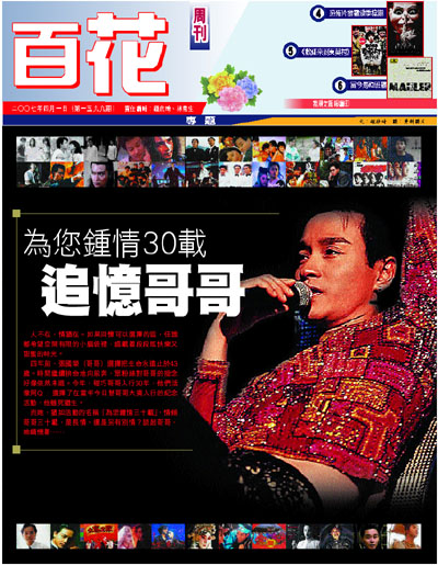 四年前,張國榮(哥哥)選擇把生命永遠止於43歲。時間繼續拚命地向前奔,眾粉絲對哥哥的掛念好像依然未退。今年,碰巧哥哥入行30年,他們活像阿Q ,選擇了在當年今日替哥哥大搞入行的紀念活動,他雖死猶生。