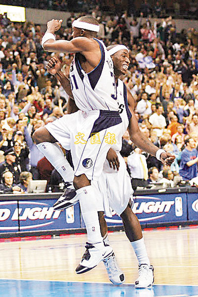 ■小牛後衛泰利(左)與祖舒侯活慶祝球會破紀錄。路透社