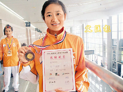 ■黃曉萍獲得女子半程賽第四名。本報實習記者吳璽倩 攝