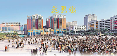 ■東莞人口「超載」達400萬人,令土地、水、電等資源日趨緊張。圖為節日的東莞厚街鎮中心廣場人頭攢動。資料圖片