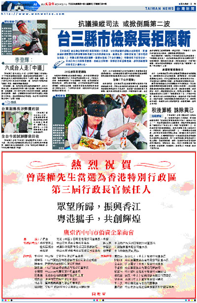 【本報訊】綜合聯合新聞網及東森新聞31日消息:台法務部斷然調動26名檢察長,更撤換偵辦機要費案的高檢署檢察長謝文定的消息曝光後,震驚各界。檢察官直指「根本是政治強暴!」,呼籲立委再度提案罷扁。基層也發起「不合作運動」,呼籲檢長不接受任命。目前已有三位檢察長響應,拒絕出任新職。檢察官改革協會透露,參與拒絕履新的檢長至少還有5名。