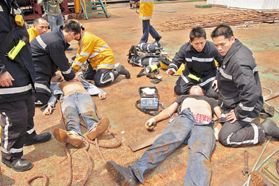 【本報訊】青衣一間船廠昨晨發生奪兩命的毒氣殺人工業意外。兩名燒焊工人在沒有安全配備下進入密閉的「水密艙」工作,懷疑吸入積聚艙內有毒氣體,雙雙昏迷艙內,同行工人見狀,情急下拔取3條燒焊器的膠喉,含在口中充作氧氣喉,冒死進入艙內救出兩人,惜兩工友抵院已證實不治。消防員正調查兩死者是否吸入一氧化碳或沼氣中毒死亡。