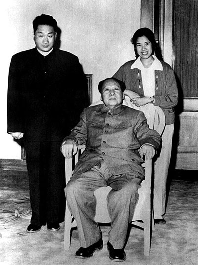 ■1961年,毛岸青(左一)與父親毛澤東(中)、妻子邵華在中南海。