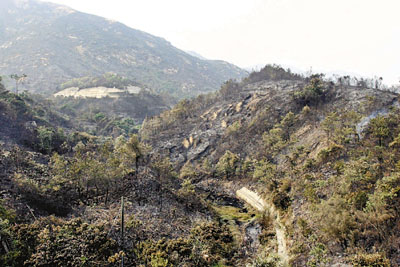 【本報訊】去年重陽節,元朗大欖郊野公園曾發生一場災難性山火,焚燒46小時後始被救熄,火場面積達460公頃,燒毀逾65,000棵林木。漁護署估計,需時10至20年才可恢復原貌,並形容這是10年來最嚴重的山火,除了大片林木被焚毀外,對自然生態亦造成重大破壞。