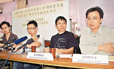 去年4月實施的欣曉計劃,要求領取綜援而子女年齡介乎12至14歲的單親家長,從事每月不少於32小時的有薪工作,目的是提升他們的自助能力及易於融入社會。雖然收入沒有限制,但協助他們尋找工作的機構若在18個月的計劃期內,能協助48名單親家長賺取每月至少1,600元,則可額外獲得75,000元獎金。社總理事任國棟指出,有團體可能利用這一點,過度催迫單親家長尋找月入1,600元的工作,殘民以自肥。
