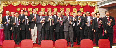 【本報訊】(記者 鄭群)港九機械電器儀器業商會第20屆會董就職暨春茗聯歡晚宴日前假旺角倫敦大酒樓隆重舉行。中聯辦九龍工作部副巡視員葉萬權,香港中華總商會副會長張成雄,廣州市工商業聯合會副會長黃健敏應邀蒞臨主禮,冼緯中榮任新一屆會長,賓主400多人歡聚一堂,同申慶賀,場面熱鬧。
