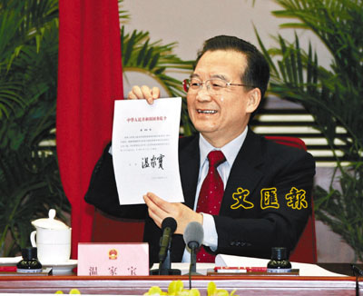 ■國務院總理溫家寶昨主持召開國務院第十次全體會議,溫總理簽署了國務院第490號令,任命曾蔭權為中華人民共和國香港特別行政區第三任行政長官,於2007年7月1日就職。 新華社