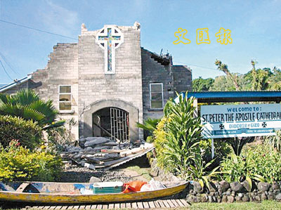 ■吉佐巿一座教堂的頂部,在地震中嚴重損毀。 路透社