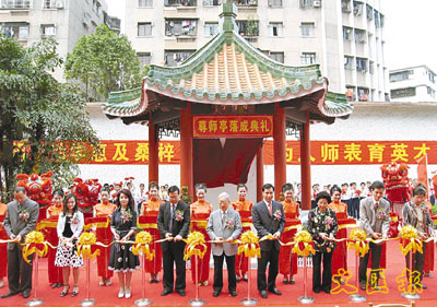 ■黃球伉儷及家人與新會領導為尊師亭主持剪綵。