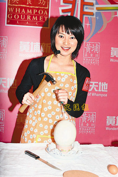 【本報訊】(記者 李煥成)曾推出過甜品和健康營養食譜的歐倩怡,最近又修讀營養學,昨日獲邀出席假黃埔美食坊舉辦的《復活「巨」蛋新煮意》活動。她說︰「我只是修讀完一張文憑,還有多張才可以正式做營養師,現在我只是一隻營養豬,因為讀了之後注重營養識得調理身體﹗」活動中,歐倩怡即場以巨形的鴕鳥蛋炮製美食,由於鴕鳥蛋的殼相當硬,最終需動用鐵鎚將蛋殼破開。她說:「鴕鳥蛋這種食材在港很少有,以前只是到外地拍旅遊特輯時見過及騎過鴕鳥。記得當時牠完全不受控制,只懂亂跑!相當害怕。」而當她獲悉要出席此活動後,因完全未接觸過此蛋故特意向大會拿了幾隻回家用來試菜,老公郭晉安亦因而吃了很多鴕鳥蛋實驗品!