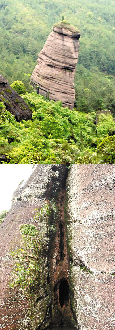福建連城冠豸山山川秀麗,風光如畫,是國家重點風景名勝區。這裡一處特別的景點—陰陽合雙絕,被譽為「客家神山」,上圖為生命之根。下圖為生命之門。 中通社