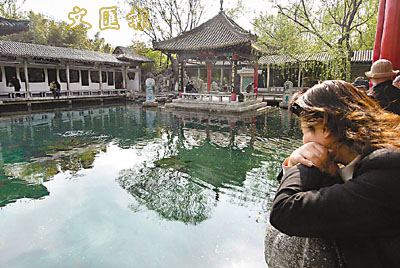 ■近日,濟南趵突泉噴湧無力,水位降至27.66米,跌破28米橙色警戒線,直逼27.60米紅色警戒線,面臨再次停噴的危險。 新華社