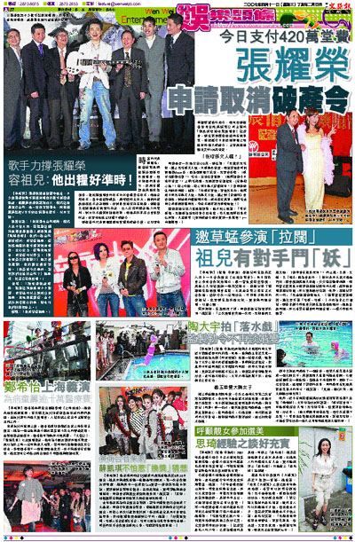 張耀榮的代表律師聽罷法官頒佈破產令後,立即要求申請暫緩執行命令。而昨晚張耀榮如常出席其娛樂公司主辦的「劉鳳屏濃情相聚演唱會」記者會,張生被傳媒包圍追問有關事宜,他透露今日會透過律師上法庭取消個人破產令,主要原因他願意支付420萬堂費。