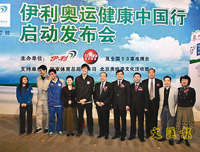 據悉,該活動旨在推動「全民奧運」熱潮,引領全民參與健身,覆蓋全國30個省、市、自治區,包括近2千個社區,路演場次高達2300場。啟動儀式上,劉翔、郭晶晶等明星運動員與來賓記者紛紛登場競技,在諸如仰臥起坐、摸高、俯臥撐、折返跑等項目上留下自己的成績。該活動將於4月中旬啟動持續至北京奧運會開幕。會上,陝西渭南市和江蘇連雲港市的社區代表,接受了伊利捐贈的健康社區建設基金,伊利還將向全國1000個社區捐贈健身設備。