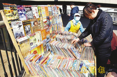 ■遼寧瀋陽街頭,民眾選購盜版 DVD。 路透社