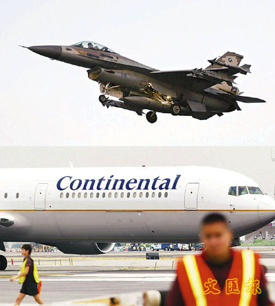 ■(上圖)以色列F-16C戰機。(下圖)大陸航空公司客機。 資料圖片