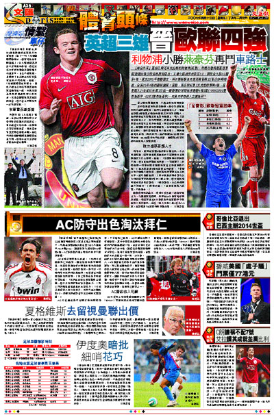【綜合外電】賽前已幾可肯定出線的利物浦(紅軍),昨晨在歐洲聯賽冠軍盃(歐聯)8強次回合憑高治建功,主場小勝荷甲燕豪芬1:0,兩回合大勝4:0躋身4強。這支2005年歐聯盟主,準決賽將跟其英超死敵車路士(車仔)狹路相逢,合演05年4強的翻版戲碼。曼聯、車仔與紅軍3支英超隊齊闖4強,這是踏入21世紀以來第3次由一國聯賽的球隊包攬歐聯4強3席(1999/2000賽季為西甲、02/03賽季為意甲),究竟英球隊過人之處為何?
