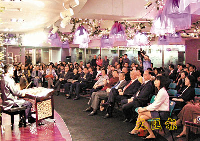 這個名為「說書唱曲饗春茗」的活動,日前假中環廣場光華新聞文化中心舉行。全國政協委員藍鴻震、著名鋼琴演奏家劉詩昆、著名科幻小說家倪匡、知名的傳媒人新華社香港分社社長薛永興、香港文匯報社長張國良、社會名人陳守仁、李群華、劉智偉等500多名香港、台灣、國外嘉賓好友,相聚一堂,共度難忘的一晚。