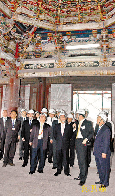 ■美國指責陳水扁以「台灣名義」申請加入世衛違背他當初的「四不」承諾。圖為扁(右三)12日到彰化鹿港龍山寺參觀。中央社