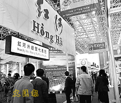 ■記者日前赴紅河州採訪時發現,「昆河海走廊」正迸發出勃勃生機。圖為紅河州在第17屆越南(河內)國際貿易博覽會上設立的展區。 本報記者 羅斯 攝