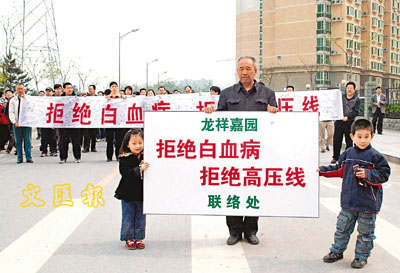15日,過百名北京市民抗議在居住區附近興建高壓電線,指其會導致白血病。據悉,這些高壓電線是為2008年北京奧運而建。法新社