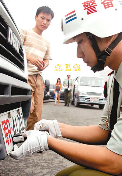 ■經常有糾察人員使用專用儀器檢查軍車牌證的真偽,整治軍車行車秩序。資料圖片