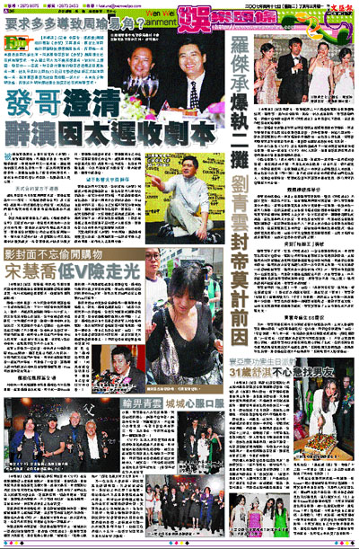 就此事記者昨日致電周潤發求證,發哥在電話中一一澄清:「《滿城盡帶黃金甲》及《苦海》都是同一間美國保險公司投資,如果說他們因不滿我的要求而易角這論點根本不成立。」