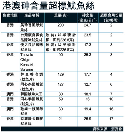 港澳砷含量超標魷魚絲 (圖)