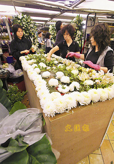 ■花店員工不眠不休地通宵趕工,製造花牌。本報記者溫瑞麟 攝