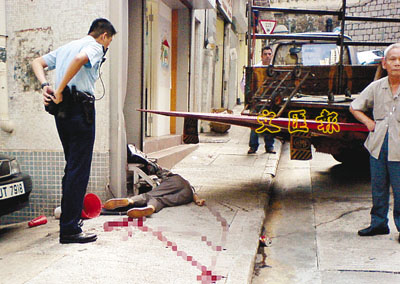 ■被貨車尾部升降板鍘死的老婦伏屍路旁。資料圖片