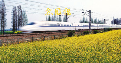 ■首次進入歐洲市場的中國高速列車,預計投入運營後時速將達200公里以上。圖為飛馳在滬杭鐵路上的國產化CRH2型「和諧號」,時速200公里以上。中通社