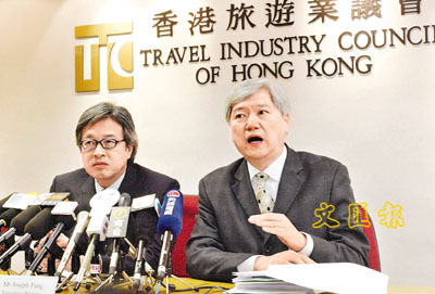 ■香港旅遊業議會擬推8招打擊黑店,左為主席何柏霆,右為總幹事董耀中。