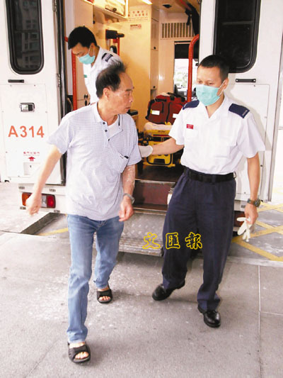 ■被樓上滴下的通渠水灼傷頭和臉部的老翁送院診治。