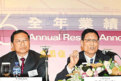 ■天津港發展主席王廣浩(右)已呈辭,將交棒予執行董事于汝民(左)。 本報記者張偉民 攝