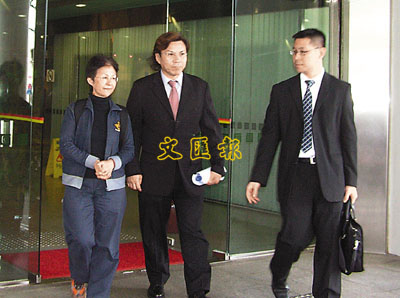 ■大律師葉賜豪(右)及代表李寶玲的律師黃國桐,陪同徐母張維美離開法庭。本報記者陳美琪 攝