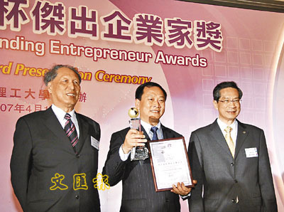 ■黃立明董事長(中)接受紫荊花杯傑出企業家獎。