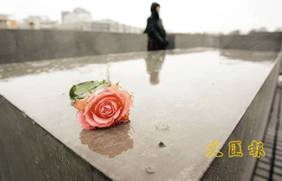 ■今年1月是解放奧許維茨集中營62周年,柏林的紀念館前,人們放下鮮花,追悼死於集中營的6百萬名猶太人。 法新社