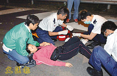 受傷女子王玉燕,30歲,任香港賽馬會女騎馬人。事發在昨晨4時許,王如常乘由九龍入大埔的公共小巴,並在馬場對開的大埔公路近迴旋處方向下車,然後橫過大埔公路,其間一輛深色房車沿九龍方向行車線高速駛來,王女猝不及防被房車撞及,更被拋起飛彈5米外墮地,惟肇事房車事後不顧而去。幸王女在被撞時仍臨危不亂,在墮地時更懂得翻滾,而卸去強大撞擊力,僅左腳扭傷坐在路邊,途經駕駛者見狀替她報警。