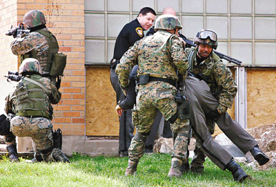 ■全美大學陷入槍擊案的血色恐怖氣氛中,部分大學舉行反槍擊襲擊演習,希望不再重演悲劇。美聯社