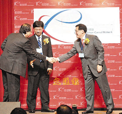 本港平均每年有四百至六百人因為中毒死亡,衛生署及醫管局等多個機構,昨天成立香港中毒防控網絡。衛生署希望透過網絡,加強各個部門的溝通,一發現中毒事件,即時通報給市民,減少中毒個案。衛生福利及食物局局長周一嶽(右)主持開幕禮。 本報記者李志樑 攝