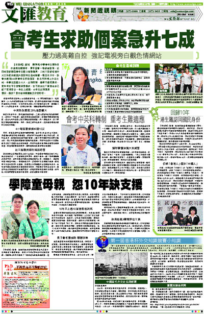另外,青協為會考生提供的輔導熱線,由今年1月至4月18日期間,共處理848宗會考生求助個案,較往年平均500宗大幅上升近七成。有考生表示,在溫習期間精神過分緊張,4個小時的溫習時間共解手達10次,擔心考試期間尿頻而引起監考員懷疑;亦有考生近月不自覺強迫自己記下電視旁白及報章雜誌;另有考生在休息時無意瀏覽色情網頁後,每當溫習感到沉悶時,腦海便無法控制浮現色情畫面。