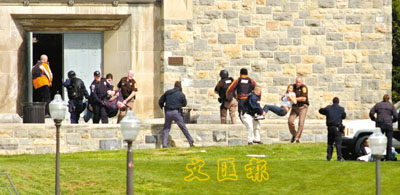 美國弗吉尼亞理工大學發生槍擊案,數名傷者被抬離現場。