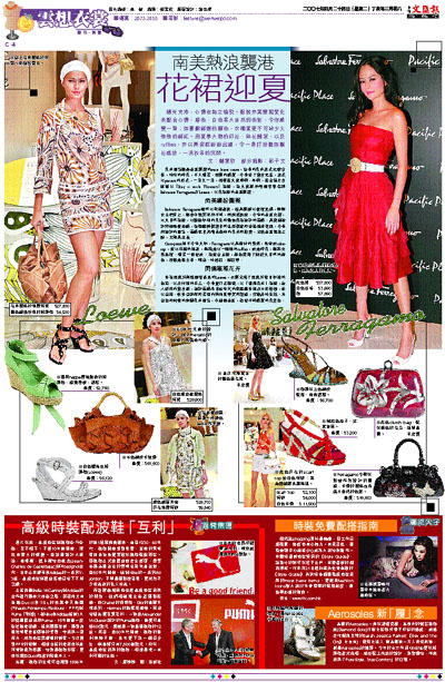 陽光充沛,心情也為之愉悅。服裝亦需要點變化來配合心情,綠色、白色等大自然的色彩,令你感覺一新;如喜歡鮮艷的顏色,衣櫃裡更不可缺少火辣辣的鮮紅。而夏季大熱的印花、碎花圖案,以及ruffles,亦以高姿態紛紛出爐,令一身打扮猶如繁花盛放,一洗秋冬的沉悶。
