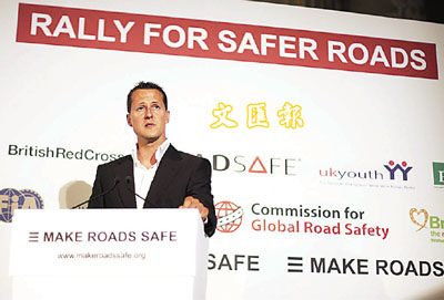 ■舒麥加在倫敦出席聯合國「安全駕駛周」活動。法新社